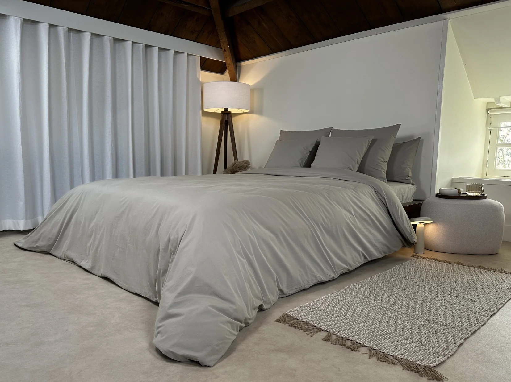 The Bedrebel Dreamteam deliberately chose a fine cotton percale weaving of 200 TC (thread count) for its cotton products. This is because a higher thread count than 200 TC in percale cotton results in the fabric feeling very "plastic", artificial and sweaty on the skin. In contrast, a lower thread count than 200 TC results in a lower quality and shorter product life. In short, a percale weave of 200 TC is perfectly crispy plus breathable, has a long lifespan and also holds strong at all times during washing. A true dream for every Bedrebel!