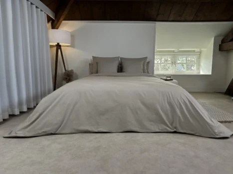 Dekbedovertrek met rits over onderzijde & dekbedclips | Percale katoen – Japandi taupe | 2 persoons incl. 2 kussenslopen