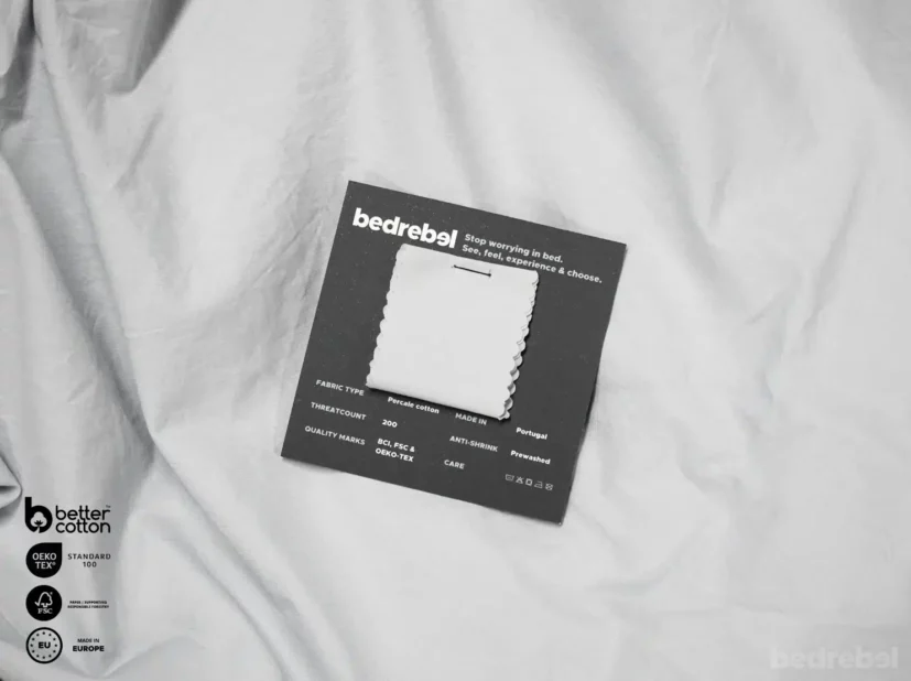 The Bedrebel Dreamteam deliberately chose a fine cotton percale weaving of 200 TC (thread count) for its cotton products. This is because a higher thread count than 200 TC in percale cotton results in the fabric feeling very "plastic", artificial and sweaty on the skin. In contrast, a lower thread count than 200 TC results in a lower quality and shorter product life. In short, a percale weave of 200 TC is perfectly crispy plus breathable, has a long lifespan and also holds strong at all times during washing. A true dream for every Bedrebel!