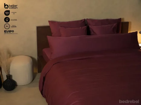Dekbedovertrek set met rits over drie zijden & dekbedclips | Satijn katoen – Merlot red – 2 persoons