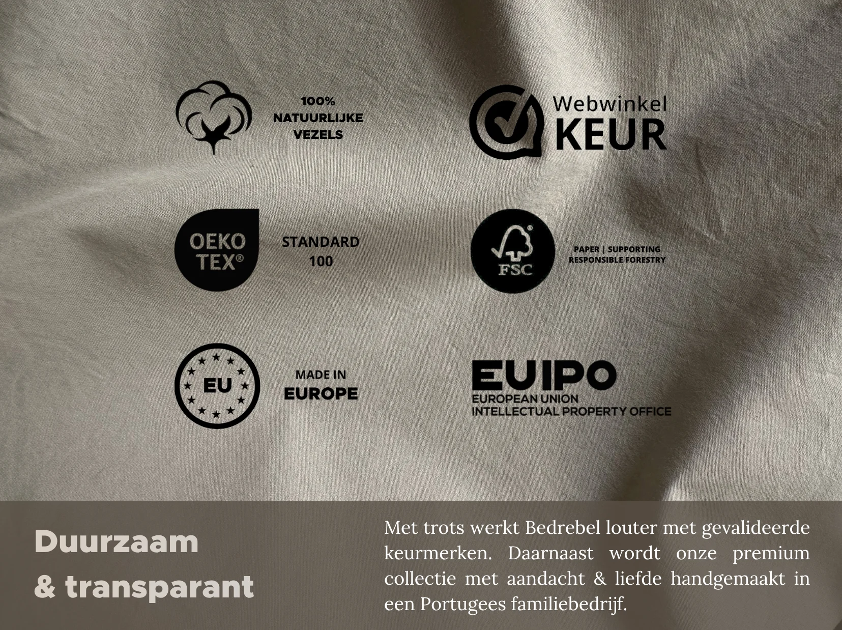Om de hele cirkel op een juiste manier te sluiten hebben we ervoor gekozen de productie van onze Bedrebel producten dicht bij huis te laten plaatsvinden. Onze kussens worden daarom in Polen gefabriceerd, in een fabriek van het gerenommeerde Duitse Brinkhaus GmbH. En al onze bedlinnen producten in Portugal, bij het kleine maar fijne familie bedrijf Alda Têxteis. Daar worden onze producten met passie gemaakt door de beste vakmensen in de Europese unie op het gebied van bedlinnen, in een schone plus veilige werkomgeving, tegen een eerlijk salaris.