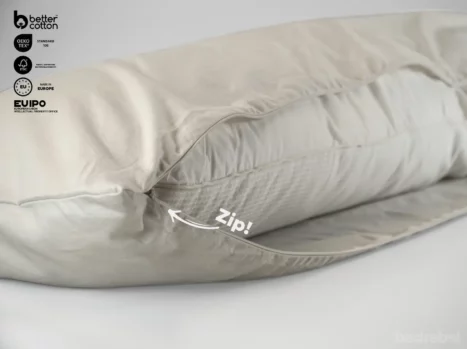 Het Bedrebel bolsterkussensloop design is uniek op twee vlakken. Zo heeft het namelijk een verborgen rits aan de onderzijde van de sloop & een drukknoop aan elk uiteinde.