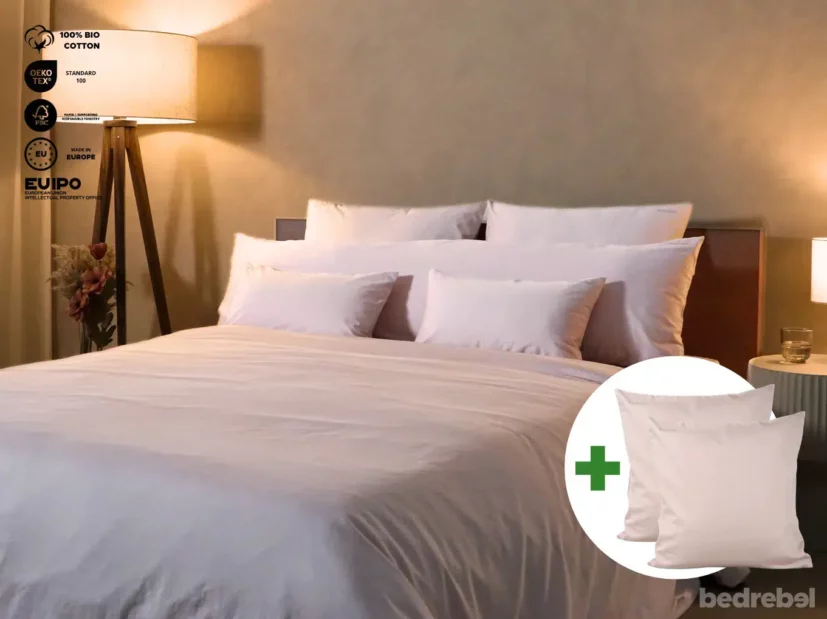 Een standaard maat, kleur en stofsoort kussensloop bij de aankoop van een nieuw dekbedovertrek? Dat vinden wij een erg achterhaald concept. Daarom kies je bij Bedrebel de maat van de hoofdkussenslopen altijd afzonderlijk van je dekbedovertrek erbij! Zo kan jij namelijk precies de gewenste maat sloop bestellen die perfect past om jouw (en jouw bedpartner) hoofdkussens. Daarnaast heb je keuze in meerdere stofsoorten en kan je lekker je creativiteit de vrije loop laten gaan met kleuren combinaties. Kortom, het behoed jou voor een onnodige extra aankoop van correct passende hoofdkussenslopen & zo hebben we gezamenlijk een positieve impact op de wereld door onnodig verbruik van (grond)stoffen tegen te gaan!