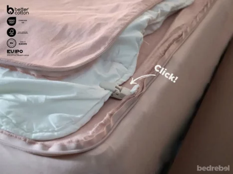 Je bed opmaken was nog nooit zo eenvoudig met het unieke Bedrebel dekbedovertrek. Een handige verborgen doorlopende rits over drie zijden maakt namelijk een officieel einde aan jouw frustratie & gezweet tijdens het instoppen van je dekbed in je dekbedovertrek. Daarnaast houden onze handige Bedrebel clips, één in iedere hoek, nacht na nacht jouw dekbed perfect gespreid binnenin het dekbedovertrek. Open moeiteloos het Bedrebel dekbedovertrek met de doorlopende rits, leg je dekbed perfect gespreid neer en bevestig eenvoudig de clips. Rits tot slot het dekbedovertrek weer dicht en klaar! Kortom, bye bye wekelijkse lijdensweg van lusjes, knoopjes, verzakken en opschudden. Hello zip, click & chill!