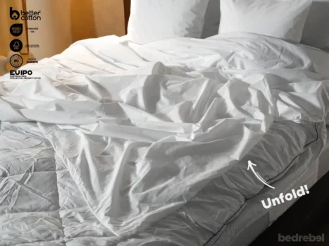 Plaats het Bedrebel dekbedovertrek evenredig op je matras, open het doormiddel van de verborgen rits & sla het open.