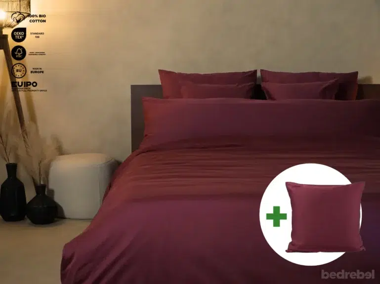 Dekbedovertrek set met rits over drie zijden & dekbedclips | Satijn katoen – Merlot red – 1 persoons