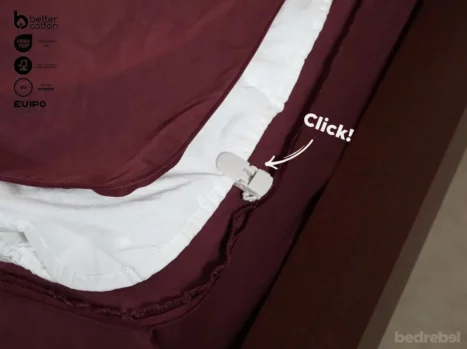 (De 4 universele dekbedclips zitten standaard in elk Bedrebel dekbedovertrek.)
