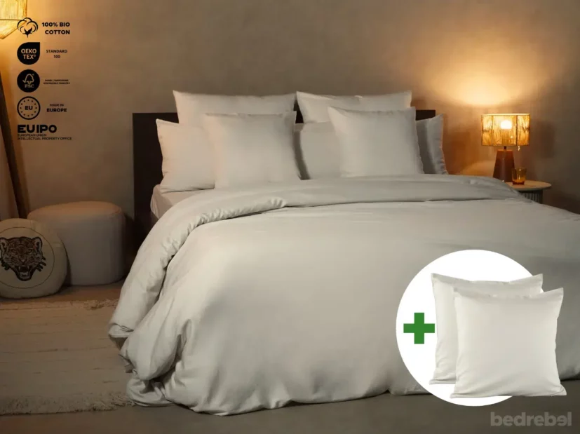 Een standaard maat, kleur en stofsoort kussensloop bij de aankoop van een nieuw dekbedovertrek? Dat vinden wij een erg achterhaald concept. Daarom kies je bij Bedrebel de maat van de hoofdkussenslopen altijd afzonderlijk van je dekbedovertrek erbij! Zo kan jij namelijk precies de gewenste maat sloop bestellen die perfect past om jouw (en jouw bedpartner) hoofdkussens. Daarnaast heb je keuze in meerdere stofsoorten en kan je lekker je creativiteit de vrije loop laten gaan met kleuren combinaties. Kortom, het behoed jou voor een onnodige extra aankoop van correct passende hoofdkussenslopen & zo hebben we gezamenlijk een positieve impact op de wereld door onnodig verbruik van (grond)stoffen tegen te gaan!