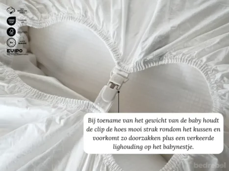 Een verkeerde lighouding of helemaal wegzakken in het midden van het nestje, dat wil je uiteraard niet voor je lieve baby. Daarom heeft het Bedrebel dreamteam geleerd van andere op de markt verkrijgbare baby relax hoezen en uiteraard geluisterd naar de feedback van vele ervaren mama's. Als oplossing voor het doorzakken in het midden van het babynestje & dus ter preventie van een verkeerde lighouding, heeft de unieke Bedrebel relax hoes een unieke Bedrebel clip aan de onderkant. Deze clip verbind eenvoudig de linker kant van de relax hoes met de rechter kant. Zo blijft de relax hoes aan de bovenkant namelijk te allen tijde voldoende strak en ligt jouw kleine dotje, ook als deze al wat weekjes ouder is geworden en in gewicht is toegenomen, in een perfecte houding op zijn of haar knusse babynestje. Alleen als jouw kleine engel perfect ligt en slaapt, kan het Bedrebel dreamteam ook met een gerust hart naar bedje toe. Daarom alleen het beste en veiligste design voor jouw kleine rebel!