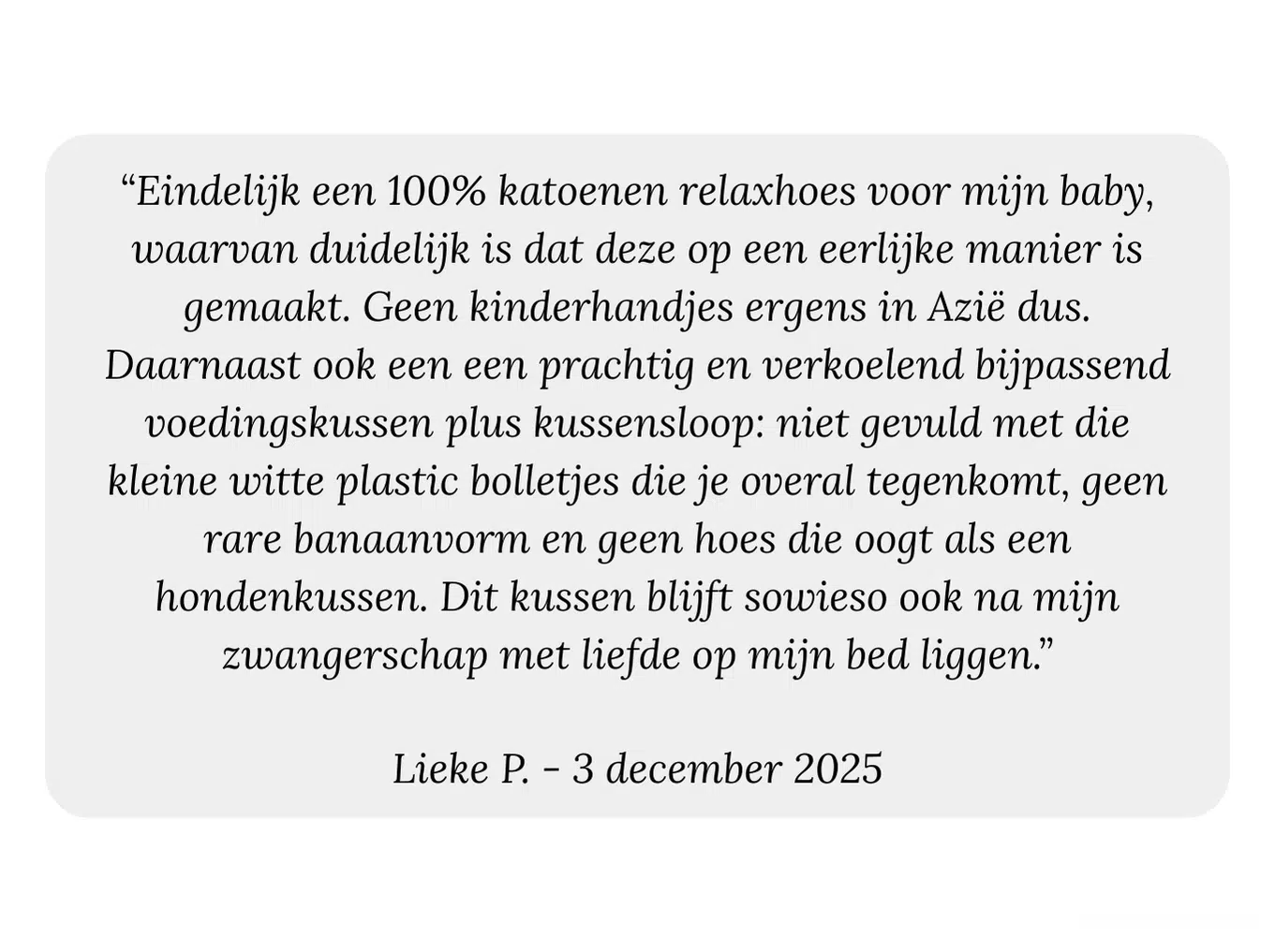 De Bedrebel baby relax hoes heeft dezelfde ovale pasvorm als andere op de markt verkrijgbare relax hoezen, en door de elastische band aan de onderkant van de relax hoes past de Bedrebel relax hoes om ieder bolster-/ voedings-/ zijslaap-/ zwangerschapskussen. Voor de beste slaaphouding van de baby adviseren wij een bolster-/ zwangerschapskussen met een lengte tussen de 140 en 180cm. Perfect passende kussens vind je op onze Bedrebel bolsterkussen pagina. Met de keuze in stijlvolle kleuren en kwalitatieve stofsoorten voor de kussensloop past het Bedrebel bolsterkussen te allen tijde, en dus ook na je zwangerschap, perfect in jouw droomslaapkamer.